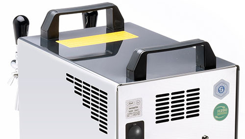 Maskinen levereras med en rostfri droppbricka och en justerbar temperaturkontroll med sju olika inställningar (2-10°C). Två handtag på ovansidan av maskinen gör den enkel att hantera.