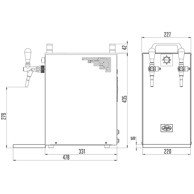 Det moderna kylaggregatet gör Kontakt 40 energieffektiv och ger utmärkt kyld öl inom 5-8 minuter efter att kylaren har kopplats in.