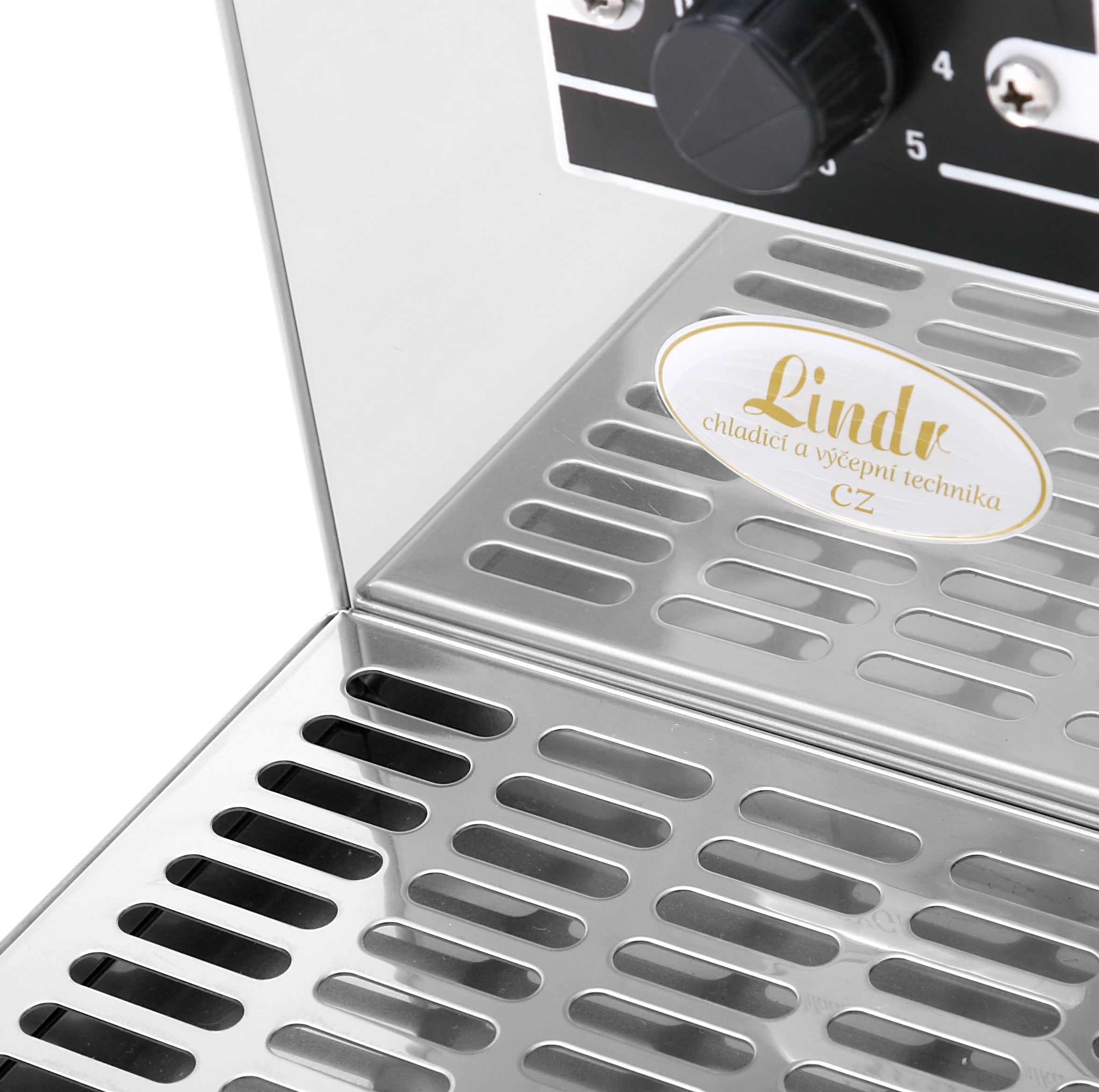 Maskinen levereras med en rostfri droppbricka och en justerbar temperaturkontroll med sju olika inställningar.