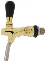 Europatillverkad tappkran av hög kvalitet i mässingspläterad koppar med kompensatorvred för reglering av flödeshastighet, pip i rostfritt och detaljer i mässing. Levereras komplett med 35 mm bakstycke.