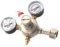Regulator med W21,8mm anslutning högtrycksinlopp och utvändig 7/16-gänga på utlopp för anslutning till exempelvis fatkoppling.